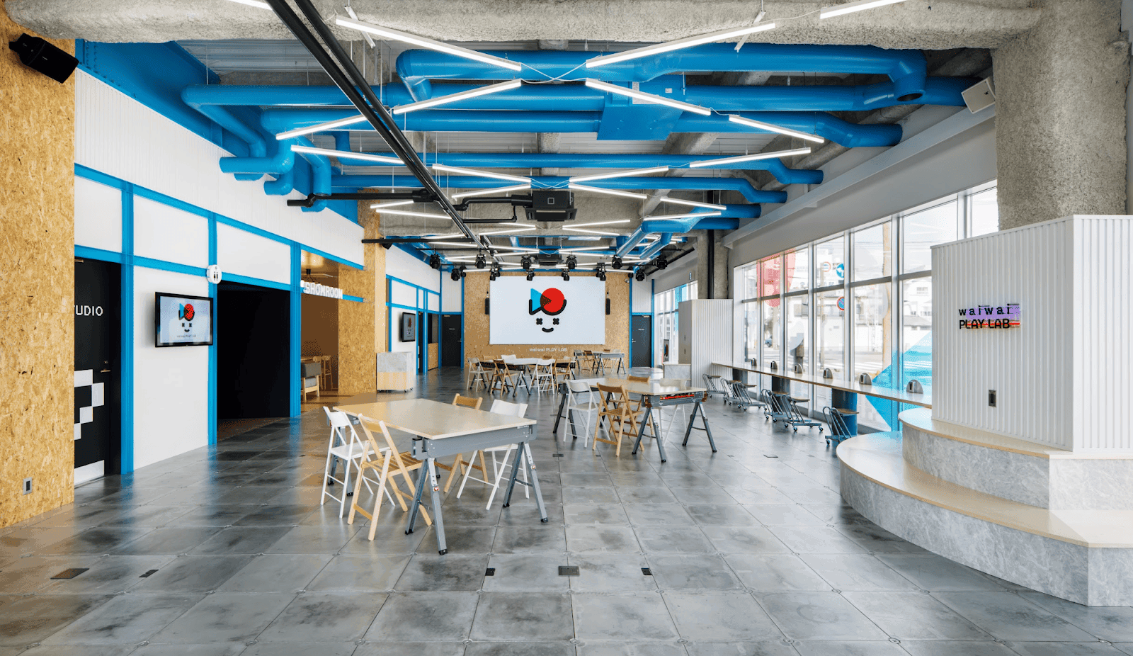waiwai PLAY LABは、“動画エンターテインメントを拡張するTechnology×Movieラボスペース“をコンセプトに、 動画制作をメインに「Technology」「Entertainment」「Education」の要素を取り入れ、 先端テクノロジーや動画エンターテインメントで遊べる・学べる・発信・交流できる機会を提供するオープンスペースです。