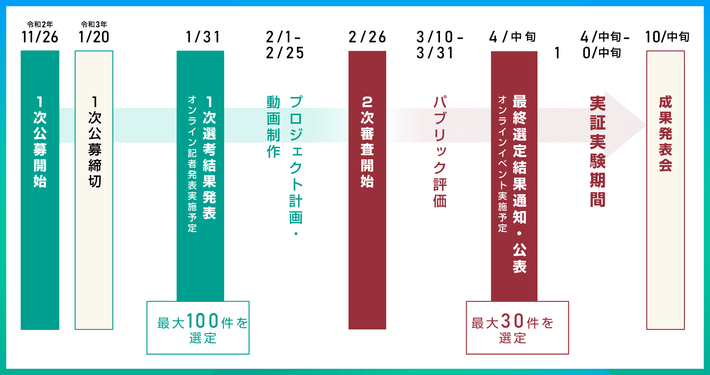 ○1次選考結果発表 ... 2021年1月31日(オンライン記者発表実施予定)