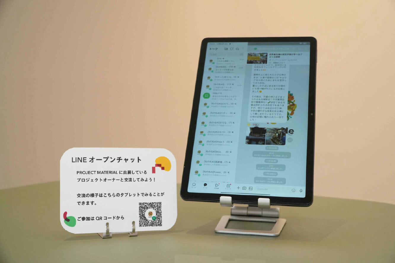 各チャットルームは活動しているメンバーの展示しているProject Material(移動式屋台)のプロジェクト紹介の表札に付いている、QRコードより入室ができます。