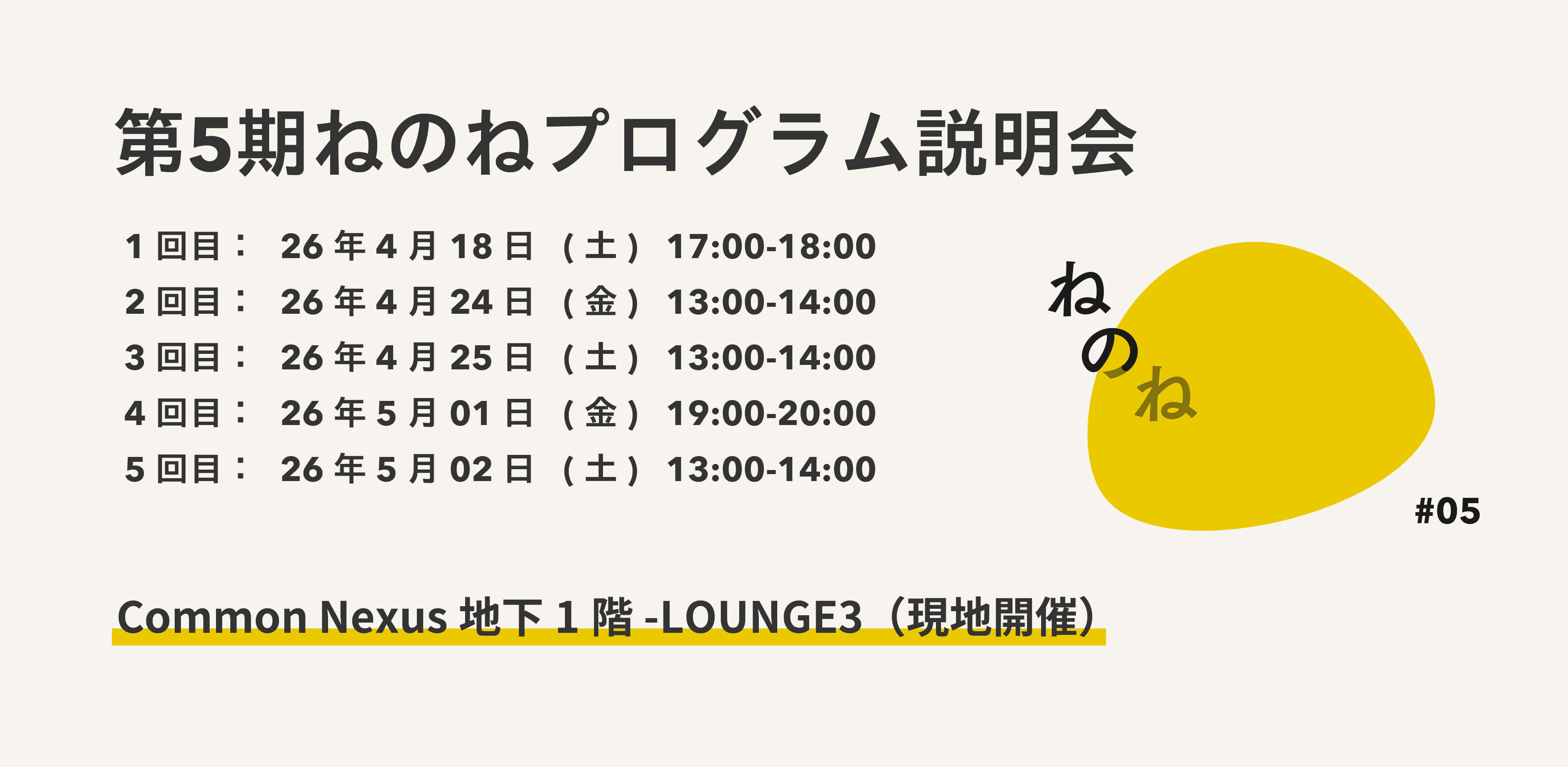 ねのねプログラム説明会:https://nenone05.peatix.com/