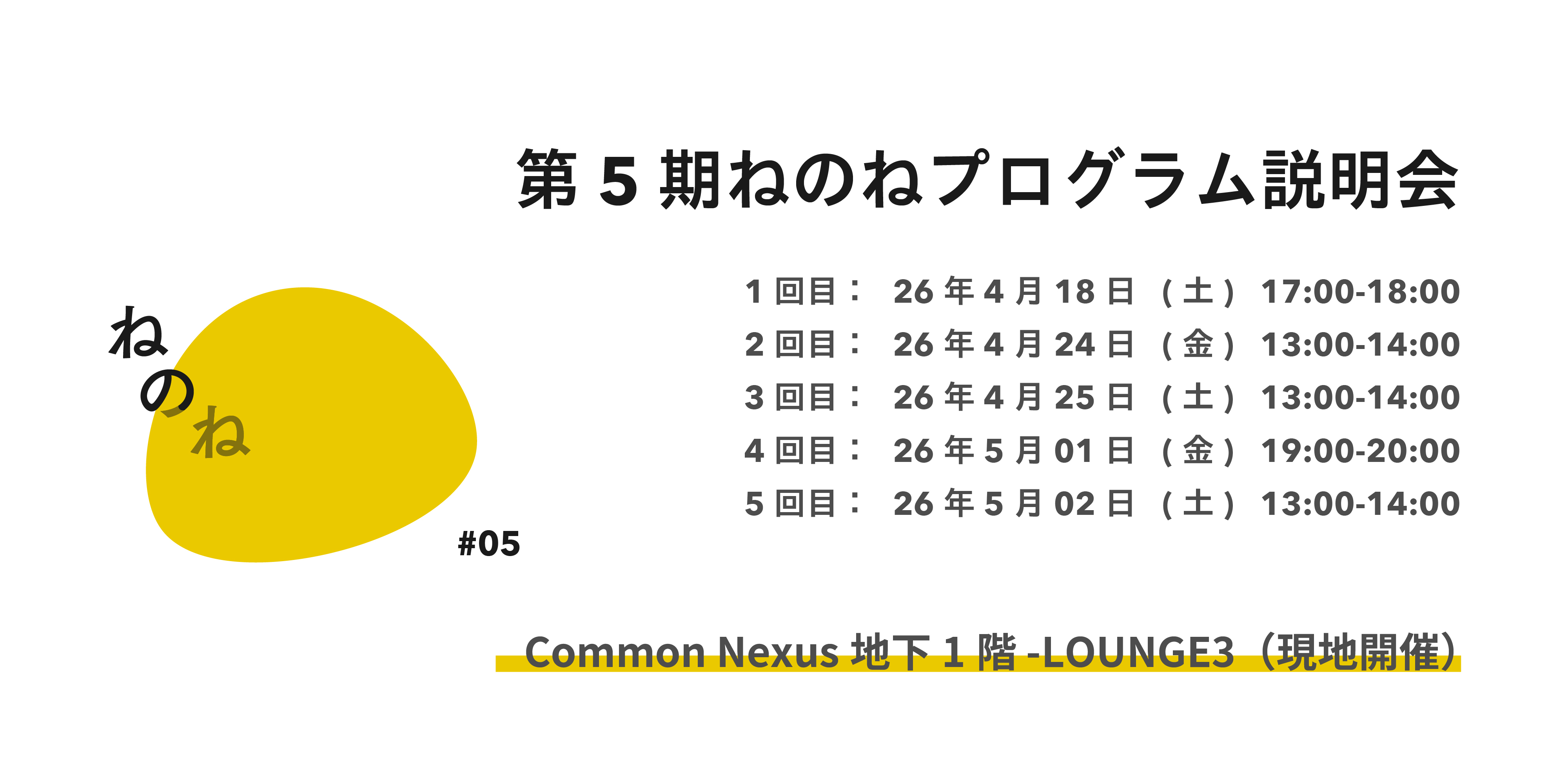 Common Nexus(ComoNe)では、現在「ねのねプログラム#05」の参加者を募集しています。