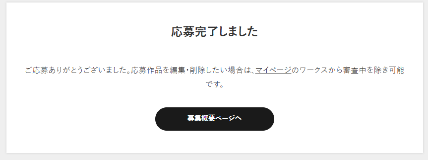 ⑧応募完了! 当選発表は発送をもって代えさせていただきます。