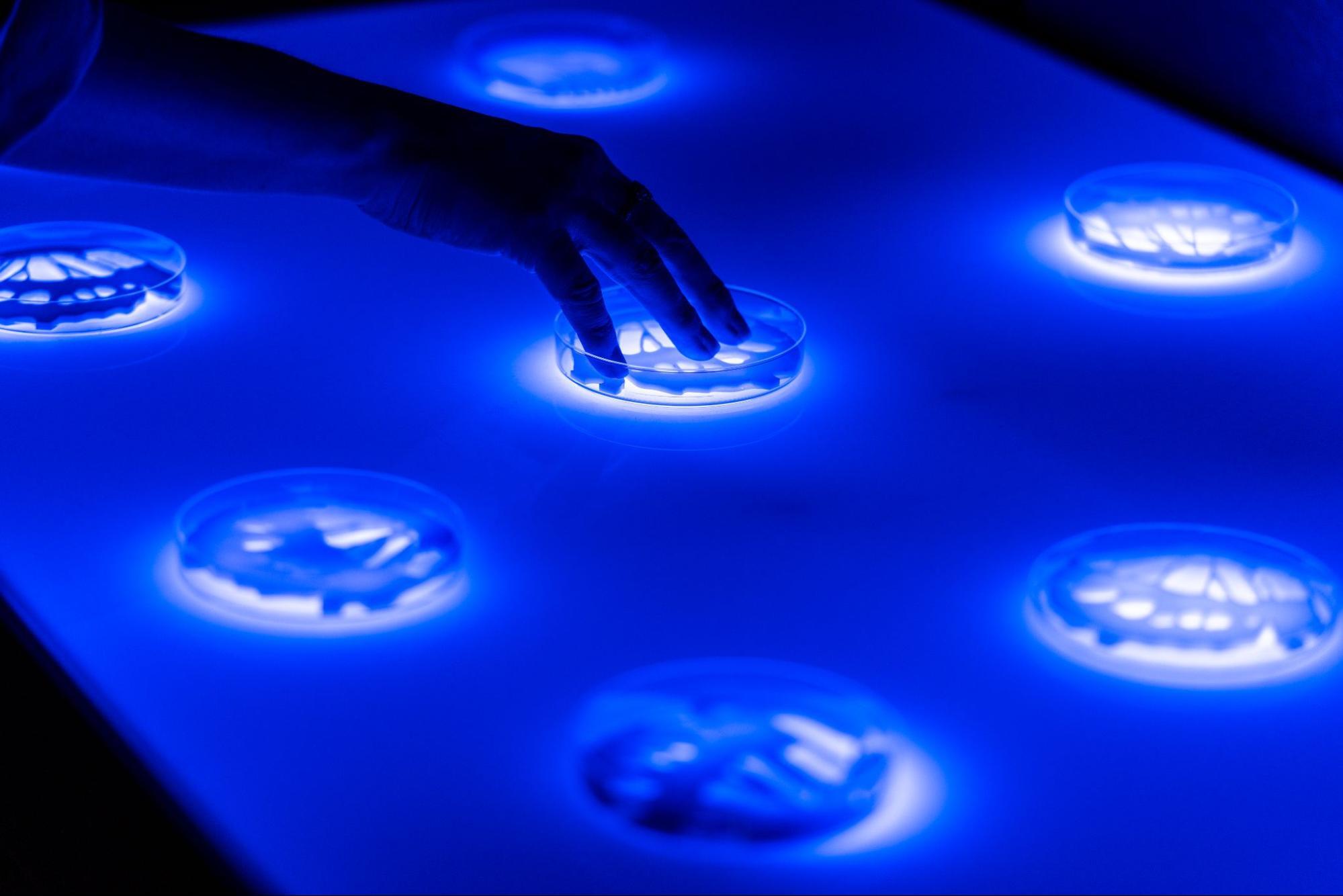 Bio-Moon Lab (バイオ・ムーン・ラボ) は、アート、持続可能性、科学を融合させ、生物発光を探求する学際的プロジェクトです。世界中の海洋環境でよくみられる細菌のひとつ、ビブリオ・フィシェリ菌をシャーレや液体溶液で培養することで、人工照明に代わる持続可能な照明として「バイオライト」を開発。現代アートという表現を通じて、照明のありかたを再定義すると同時に、テクノロジーと自然との関係性をより調和させることを目指しています。