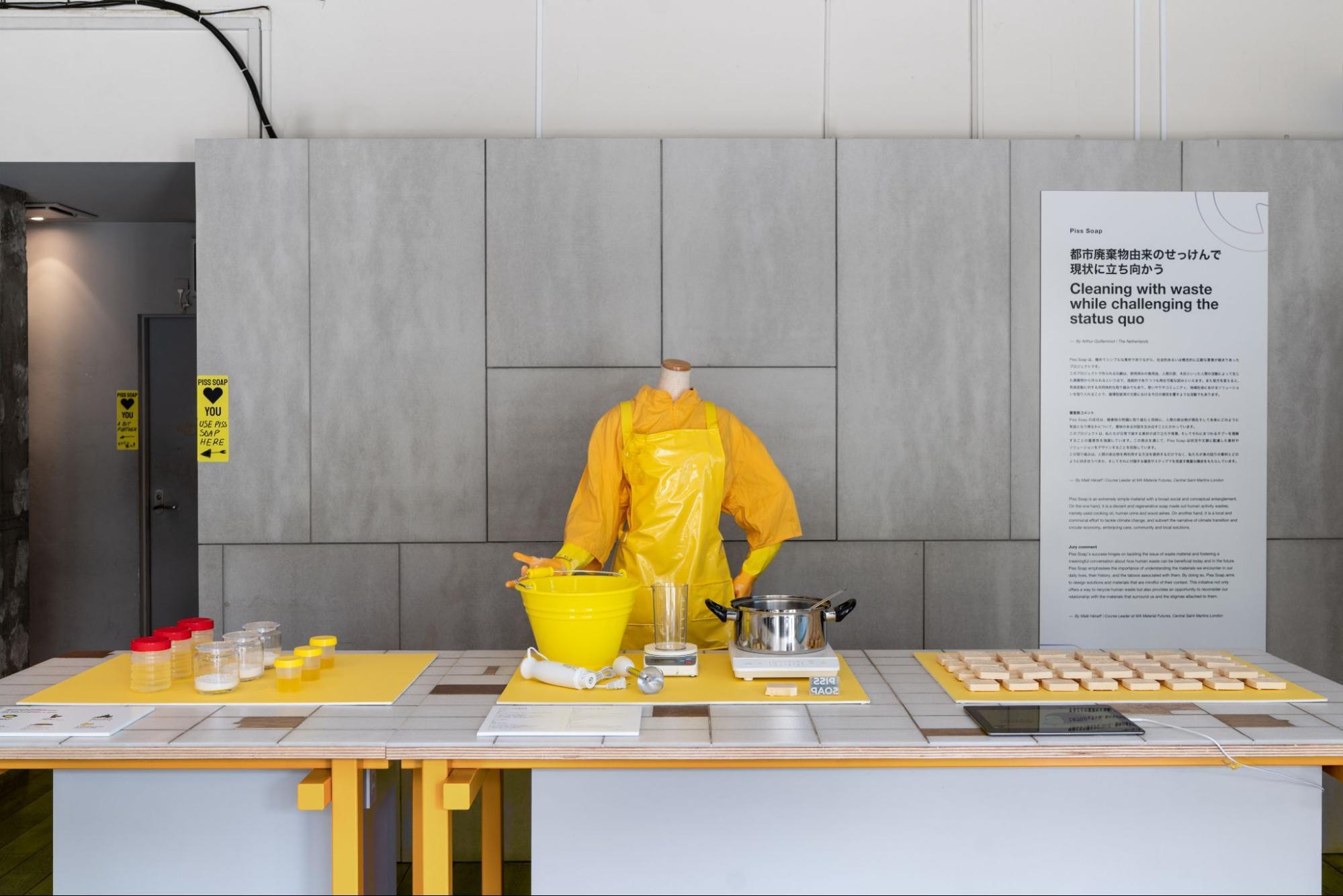 Piss Soap は、極めてシンプルな素材でありながら、社会的あるいは概念的に広範な要素が絡まりあったプロジェクトです。このプロジェクトで作られる石鹸は、使用済みの食用油、人間の尿、木灰といった人間の活動によって生じた廃棄物から作られるという点で、逸脱的でありつつも再生可能な試みといえます。
