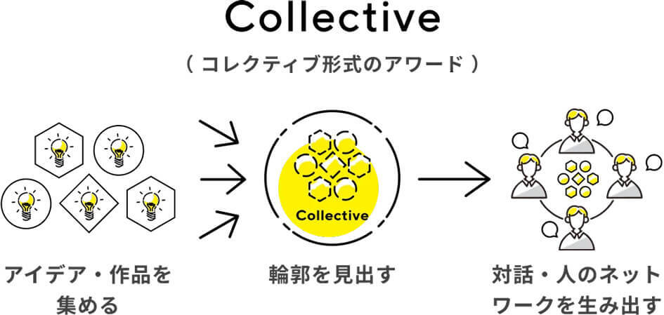 優劣を競い、応募者の高い能力や技術力を讃える公募がある一方で、企業が問いかけたテーマのもとに集まった作品を、対話や共創につなげていく公募のあり方。前者に対して後者は企業を「ひらく」アプローチとしてより有効であり、公募の「その先」に、企業とプレイヤーがつながる新たなコミュニティが生まれる可能性を秘めています。