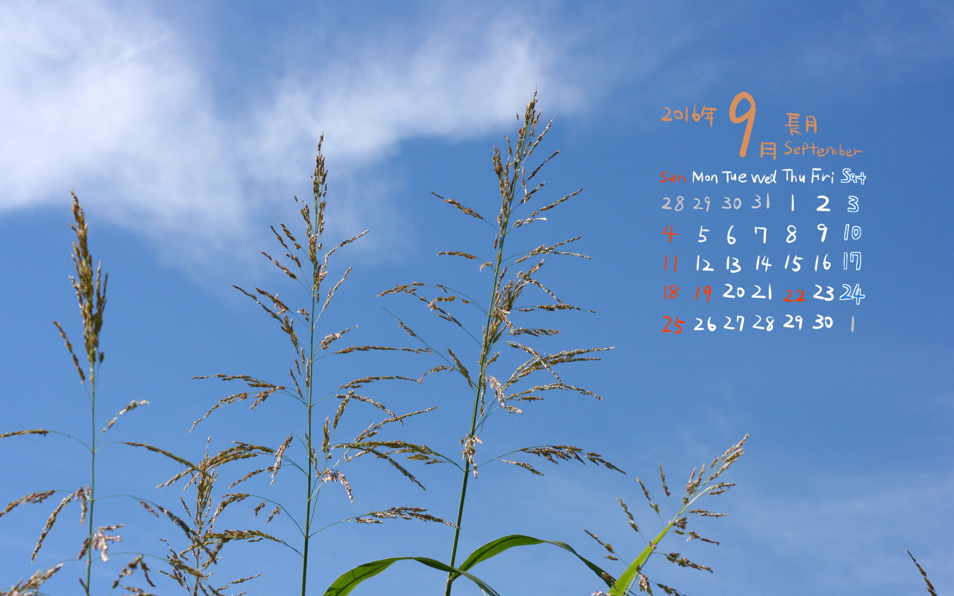 2016年9月PC壁紙(カレンダー付き)3(1920×1200)です。