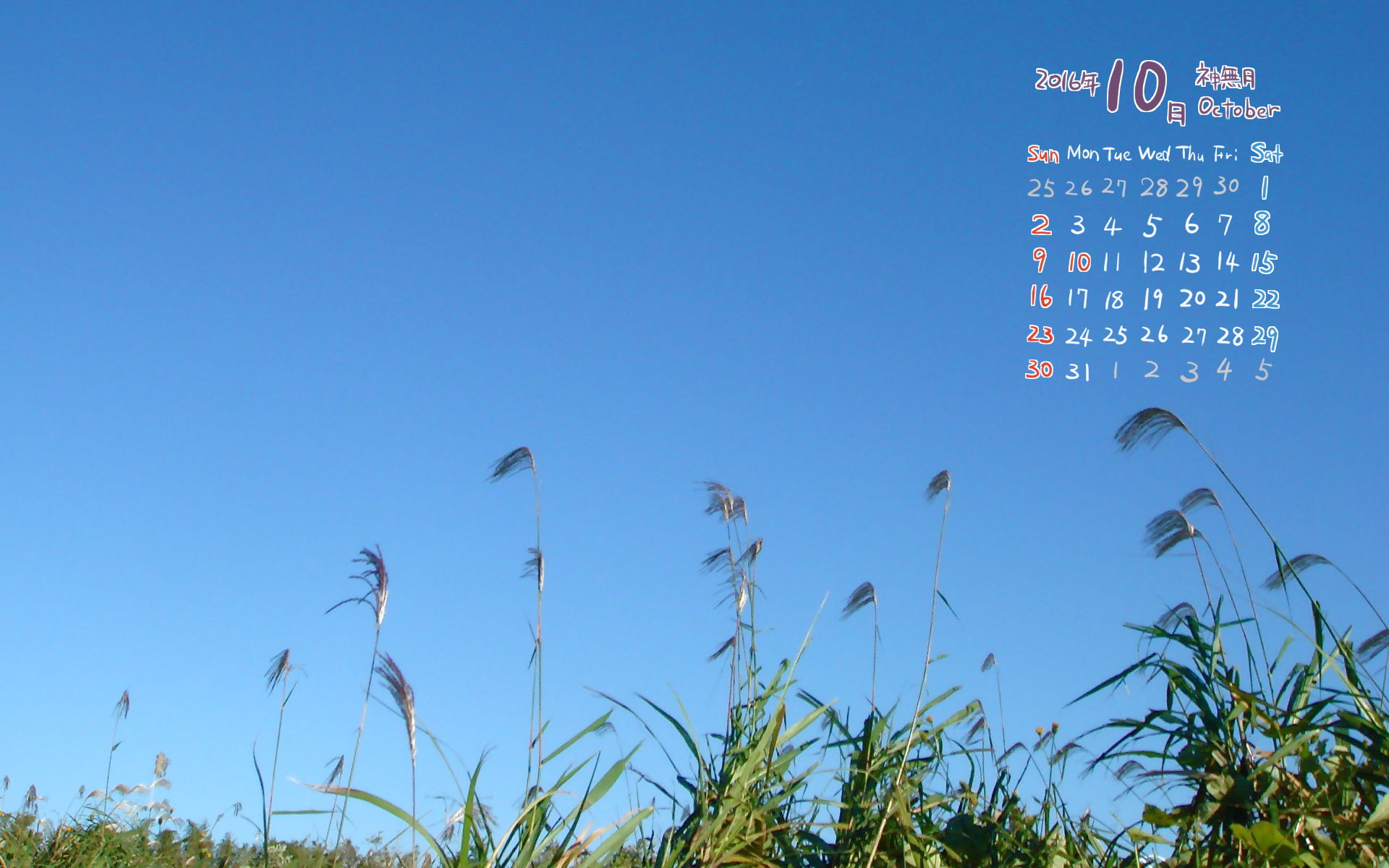 2016年10月PC壁紙(カレンダー付き)1(1920×1200)です。