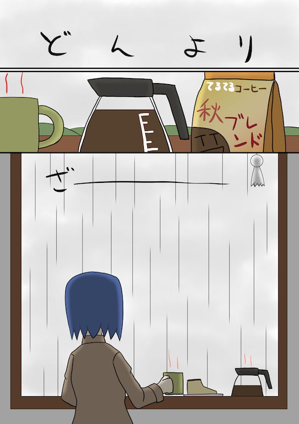 秋の雨を眺めながらコーヒーをいただきます。