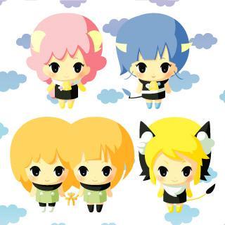 星座イラストの一部です。こちらはおひつじ、おうし、ふたご、ししの四人です。