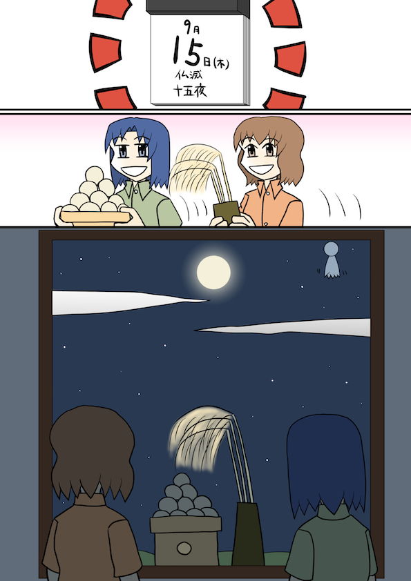 十五夜の日に書いた漫画です。十五夜の月を観賞です。