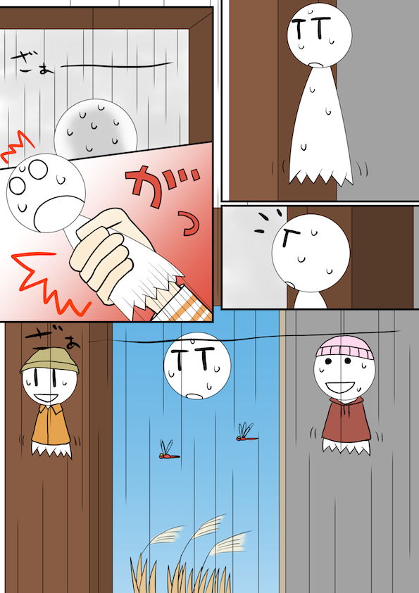 雨の日々が続くので、てるてるぼうずの周りを晴天にしてみました。