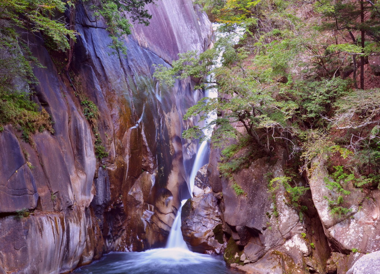 A crack of huge bedrock, this waterfall which falls with a roaring sound?