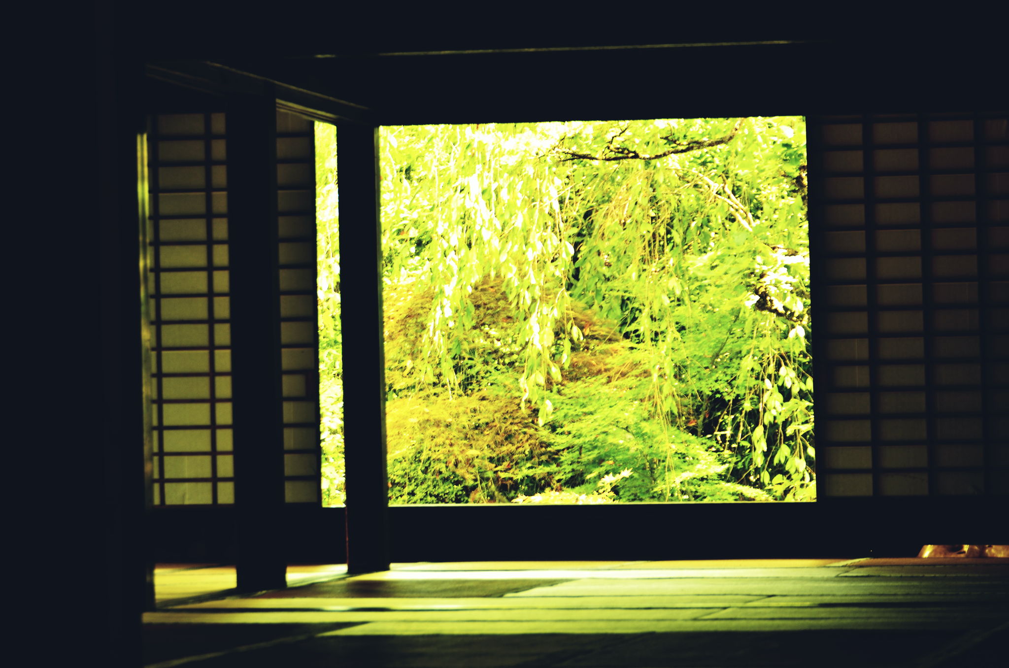 Or at a temple in KYOTO. It's everything in a garden at a corridor of a wood floor.