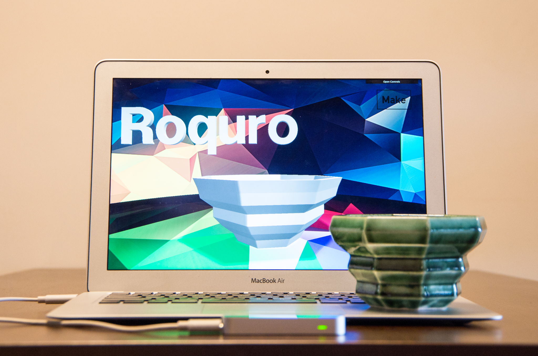 Roquro(ロクロ)は、Web上で動くバーチャルろくろアプリケーションです。自らの手で3Dの器を仮想空間上に作り上げ、プラスチック、ナイロン、陶器のような様々な素材で3Dプリントした完成品を手に入れることが出来ます。最短数十秒での器のデザインができ、素材によってはその日のうちに完成品を手にすることができます。