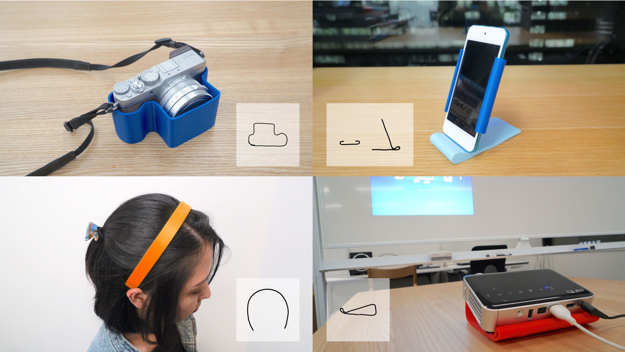 WireMoldingは、実世界で2次元的に造形を行った針金の形から3Dモデルデータとして扱える図面を自動で生成することによって複雑な3Dモデリングを支援する、実用に特化した3Dプリントの手法である。3Dプリンタの普及に伴い、個人の生活に根ざした3Dプリンタの使用シーンが想定されるようになってきた。しかし、身の回りの家具や道具に合わせた造形物を制作する場合、ものの形や大きさに合うように3Dモデルを設計しなければならず、モデリングの知識や技術を持たない初心者にとっては難度が高い。本手法に基づいて実装したシステムは、実世界で針金を押し当てて対象物の一部を型取ったり、自由に曲げて任意の形状を形作ったりして針金の型を造形し、その型を撮影して得た2次元の写真から実寸大の図面を生成する。3Dモデリングソフトで図面を読み込むことにより、高さの指定を行う操作のみで物の形にぴったり合う立体を造形することができ、特に難しい曲面の設計も手軽に実現可能で、誰でも簡単に3Dプリントによる道具の自作が可能となる。