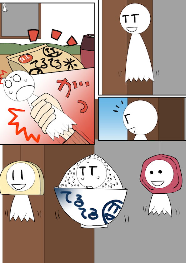 新米の季節なので、てるてるぼうずを新米ご飯に改造です!