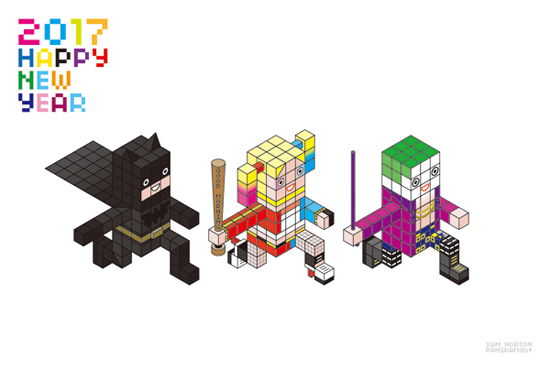 お馴染みブロック年賀 2017年は酉です コウモリ……鳥じゃないけど。