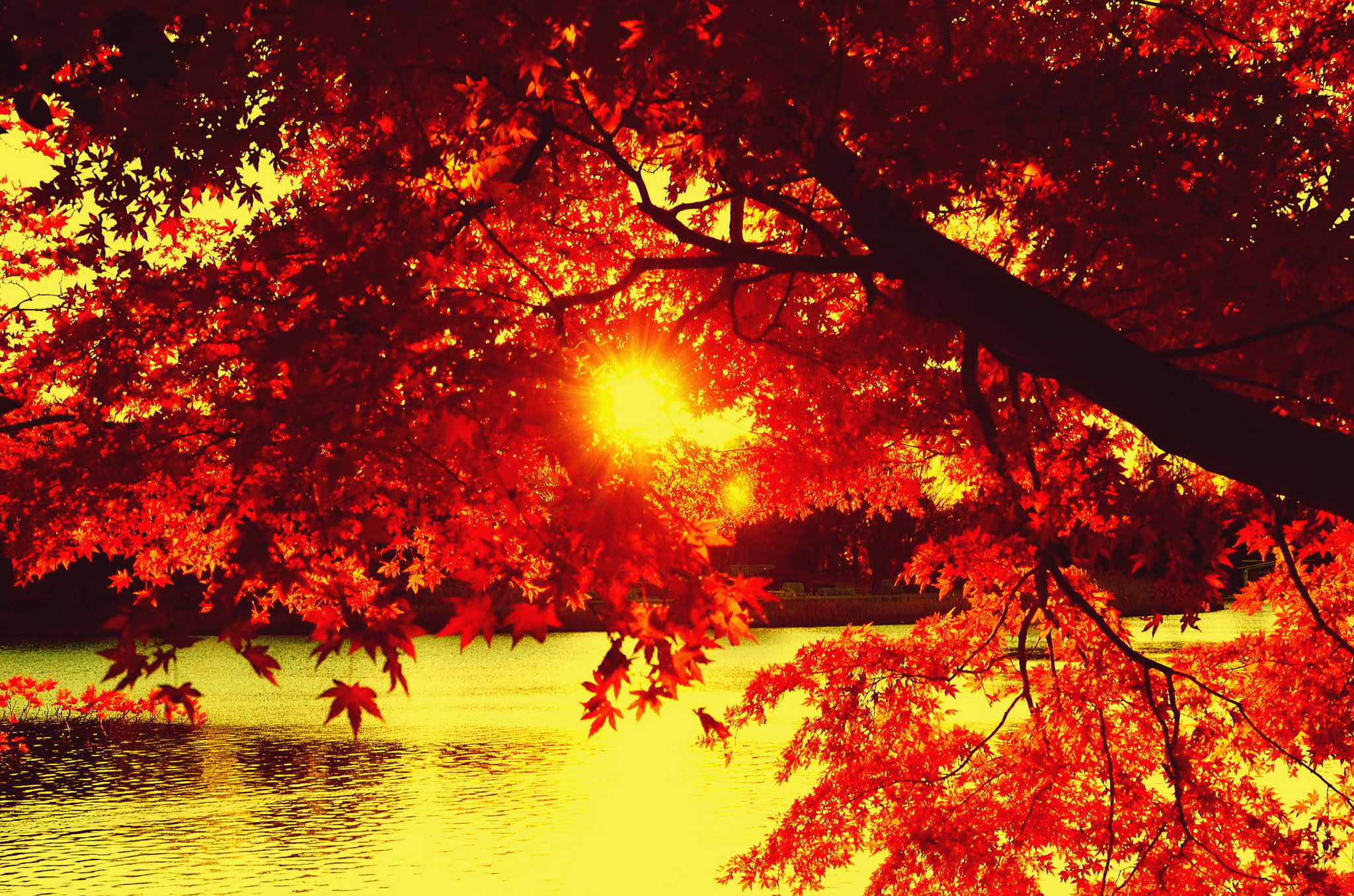 The sunset be brilliant from tree time of the brilliant maple, and please flash.
