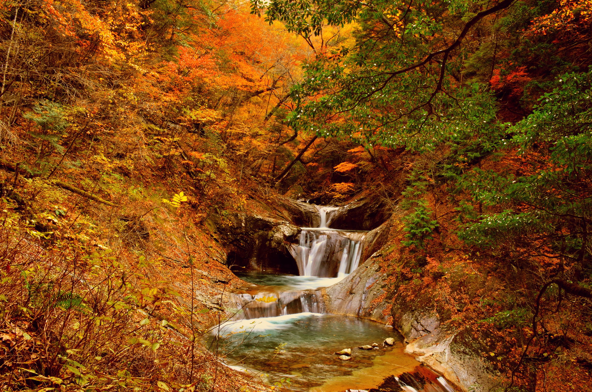The sound of water which falls in a ravine in the autumn which deepens silently straight