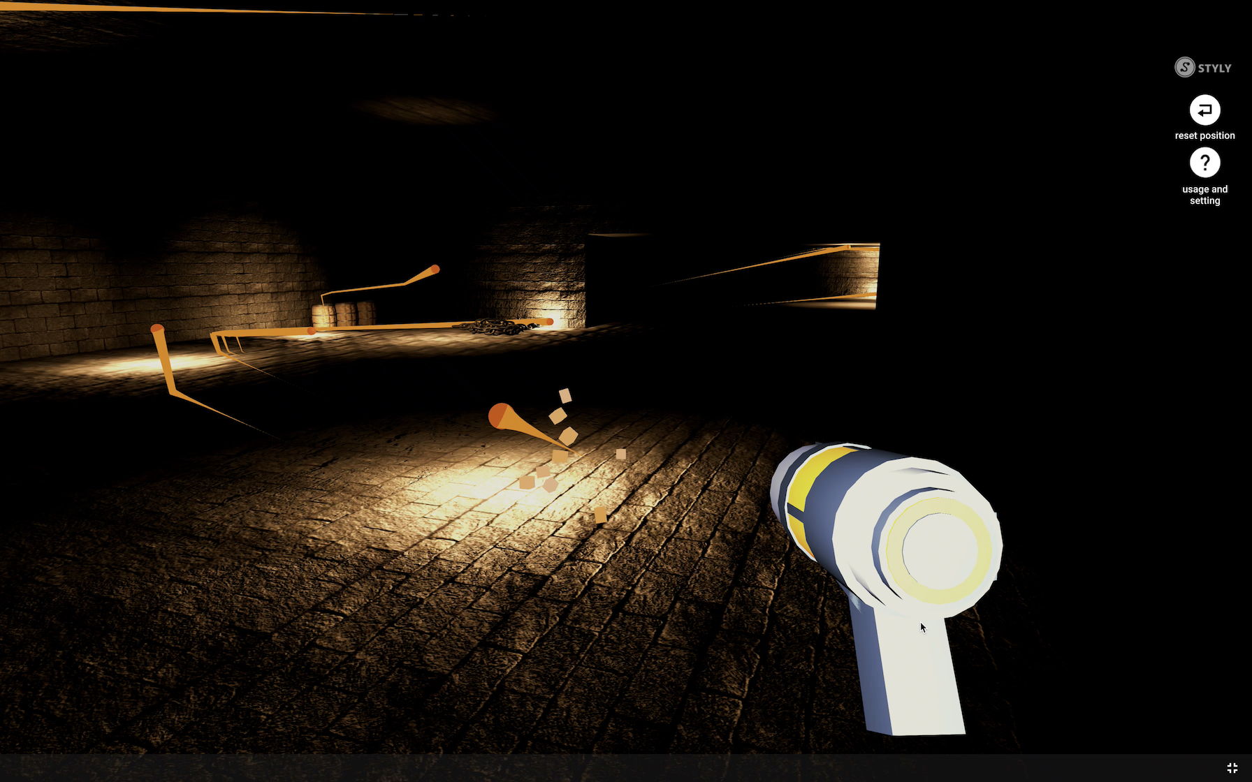 真っ暗なダンジョンの中を光線銃を頼りに進んでいく、VRシューティング ゲームです。