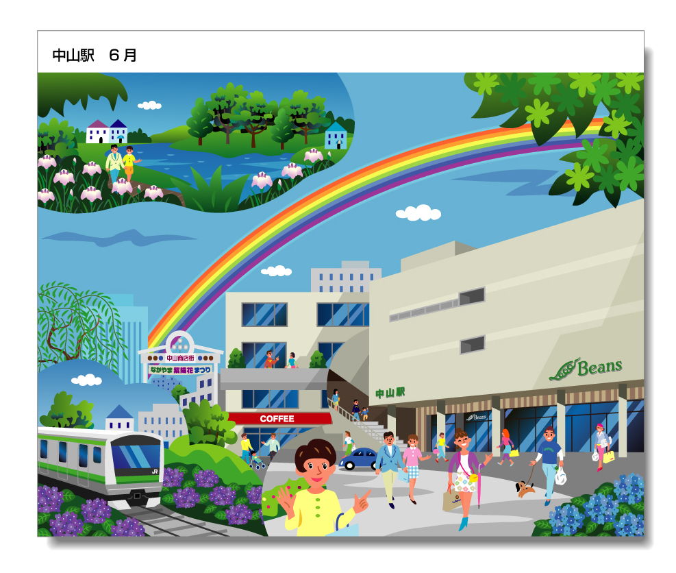 中山駅周辺でクライアントが所有する施設や名所などをオムニバス形式で表現したものです。