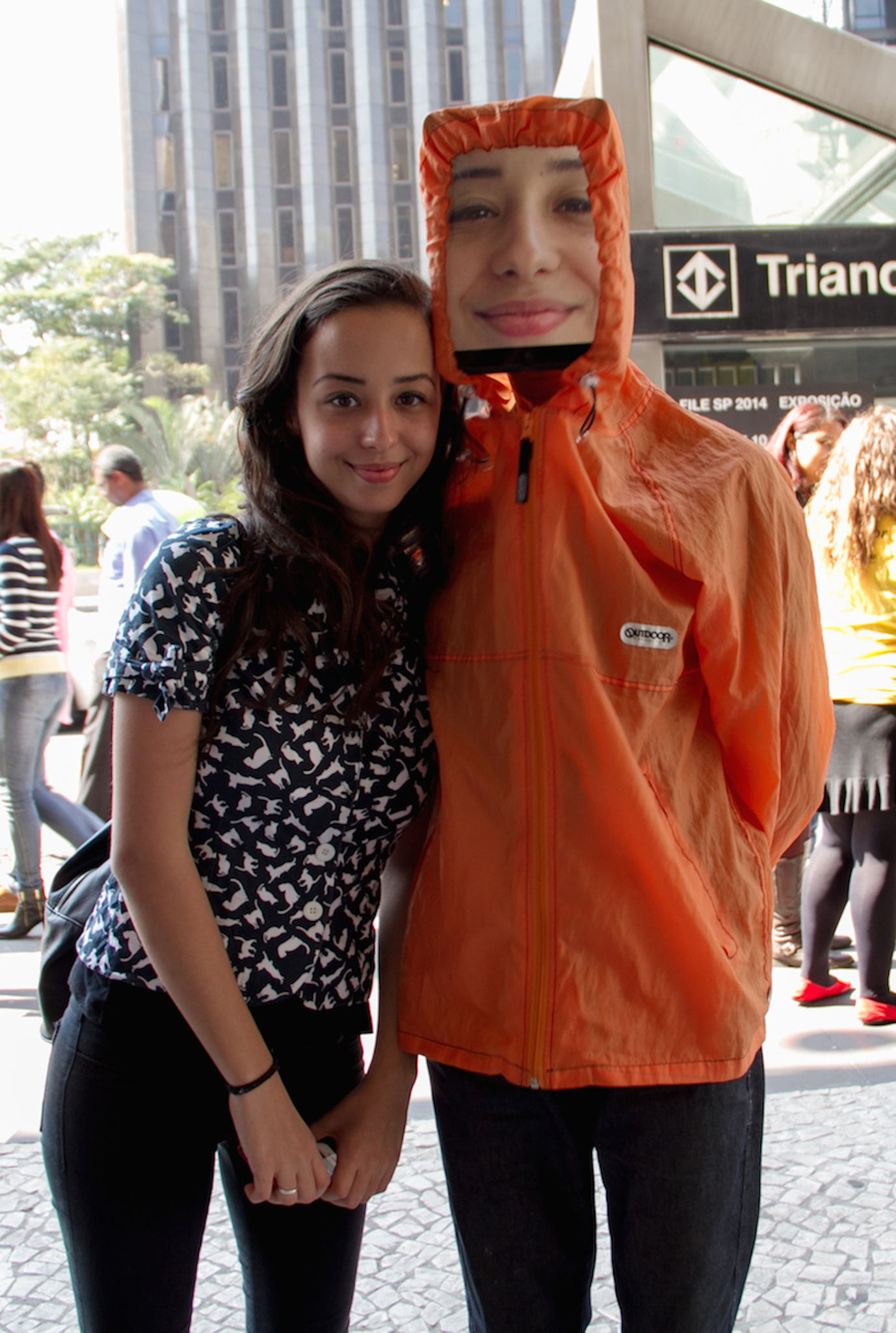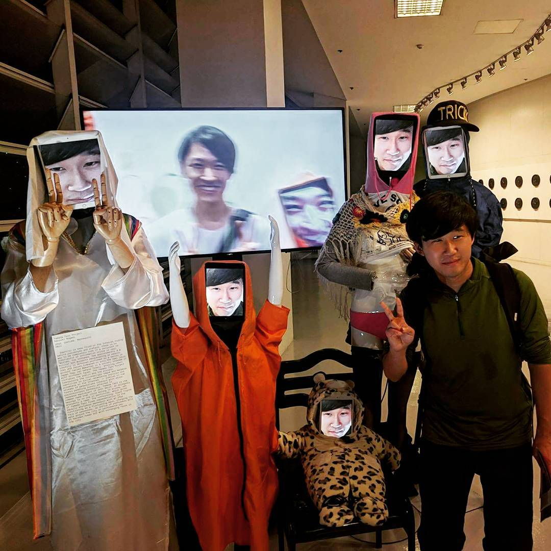 iPadを顔に装着して、通行人の顔写真を撮って自分の顔にする。あなたは彼のiPad 上に写る顔でこの人を認識する。それはインターネット上の名前やアイコンのようなものだ。特に日本のSNSでは、有名人やアニメのキャラクターなど、自分以外の顔写真を自分のアバターに使っている。この行為を現実空間にインストールし、一時的で匿名、そしてプライベートをも共有してしまうインターネット上でのアイデンティティに追求した作品だ。展示では、装飾やポージング可能なマネキンを匿名の容れ物に、変更可能なアバター機能を搭載している。そこにiPadを装着した実際の人間も現れ、同じアバターはコピー&ペーストされていき、人間をも容れ物にしたリアルbotが増殖されていく。ツイッターでは480万ものbotが存在し、出会い系では同じ顔のアカウントが何人もいる。この作品は一見、軽快に見えるが、撮られた顔はすぐにネット上で共有され、画像はずっと私のストレージに保存される。いつでもその顔を使って実際に生活してみた。現実空間へのインストールで、詐欺師のように明るく振る舞い通行人の顔写真を保存する必要があった。仕組みがわからない魔法のようなものではなく、プロセスを見せる事で誰もがしている画像の乱用を可視化したのだ。偽政治家アカウントや愉快犯のバカッターが出現した、見過ごせない日本のSNSでの風景を反映した。