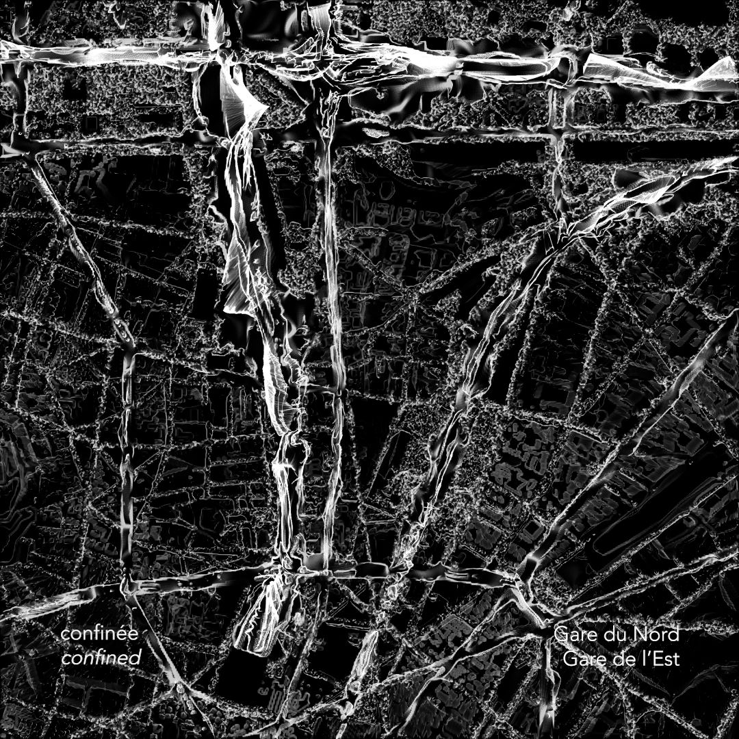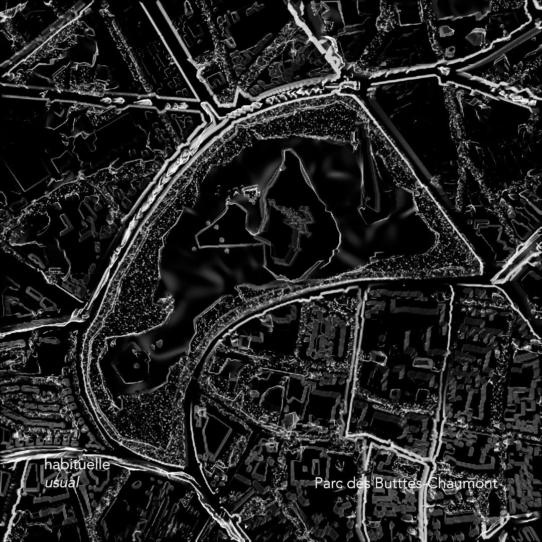 Cars' noises, airplanes' roars, underground's rustles, trains' dins, loud sirens... Paris is, like other ones, a city where silence is rare. "Cartes des Silences - Paris habituelle / confinée" [Silences Maps - Paris usual / confined] is a visualisation of the sounds of Parisian streets in order to find some silent spaces. It is a series of moving maps showing the sound levels in different locations in Paris and its suburbs. The work selects specific spaces and compares their sound level before and during the first lockdown linked to the 2020 sanitary crisis. Noise pollution has always been a crucial environmental problem for humans and non-humans. As noise is immaterial, we also tend to ignore its polluting impact. I intent through this project to create visuals so that one can understand better the spatialisation of noise pollution and what we can learn from its reduction.