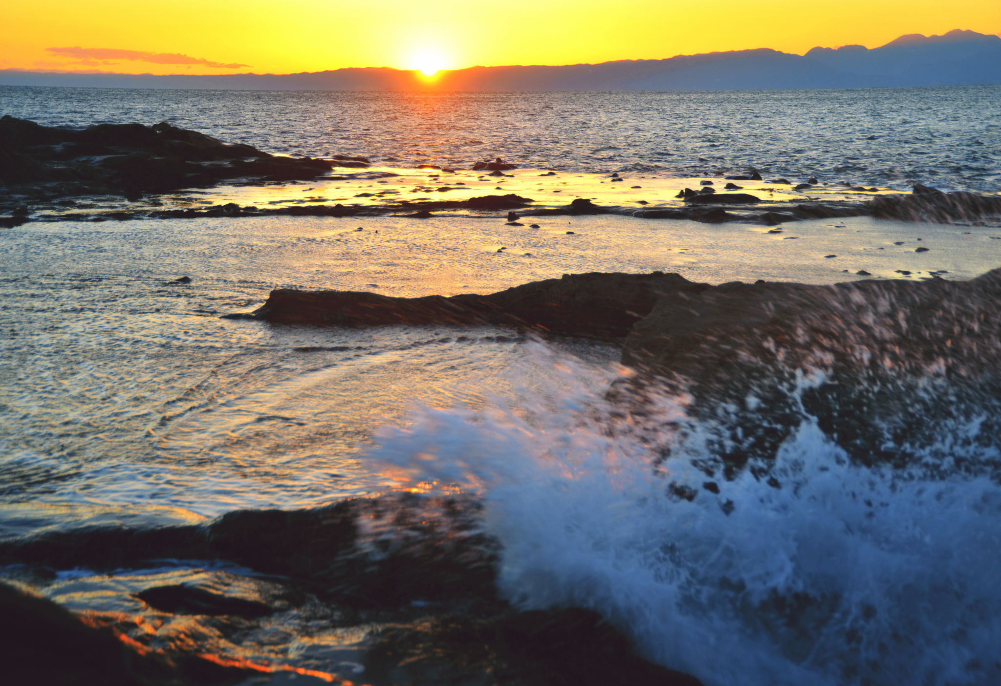 It's the moment the sun sinks into a horizon in the sea which ripples surely now.
