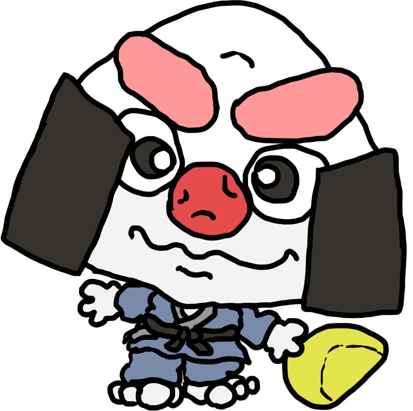 文字通り、見た目のとおりのおにぎりキャラですが、片手に持ってるたくあんがチャームポイントだったりします♪