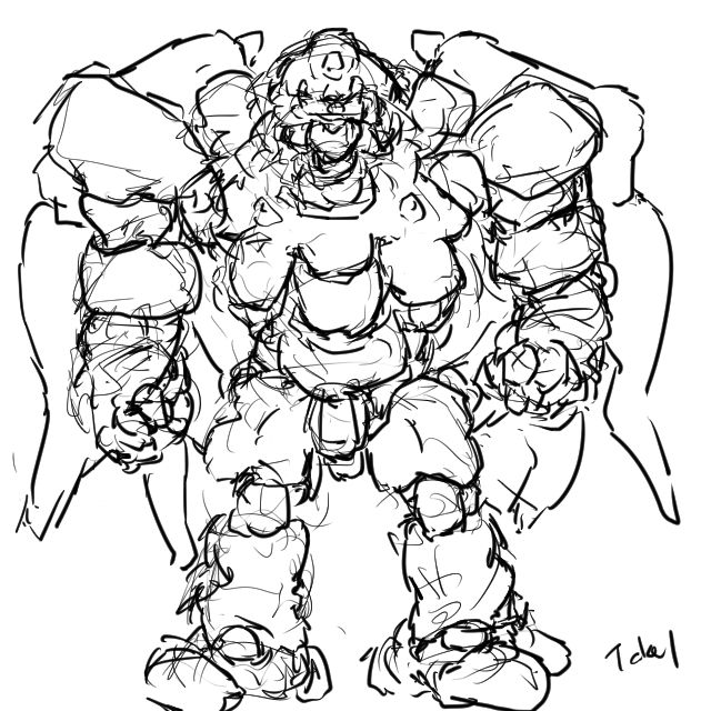 自作のラノベのメカキャラのデザインラフなのですが、ちよっとビミョーです♡