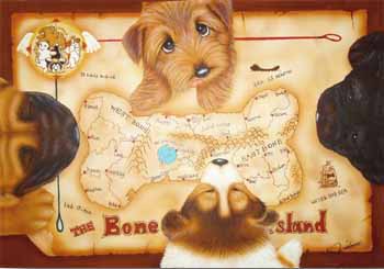 犬達が【ホネ島】に行く計画を立てているという設定で描きました。