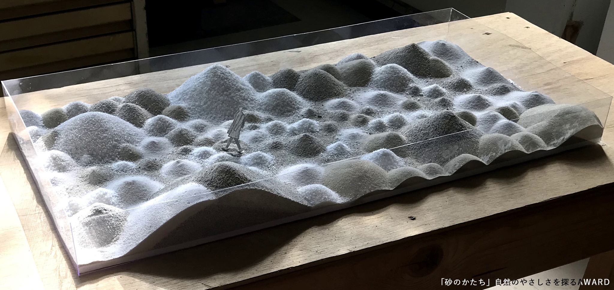 ここで私たちは、形の捉えきれなかった砂の自然な輪郭に出会う。砂の安息角を眺め、砂の円周を漂い、砂の砂らしい形の優しさと強さを身体で受け取るのである。