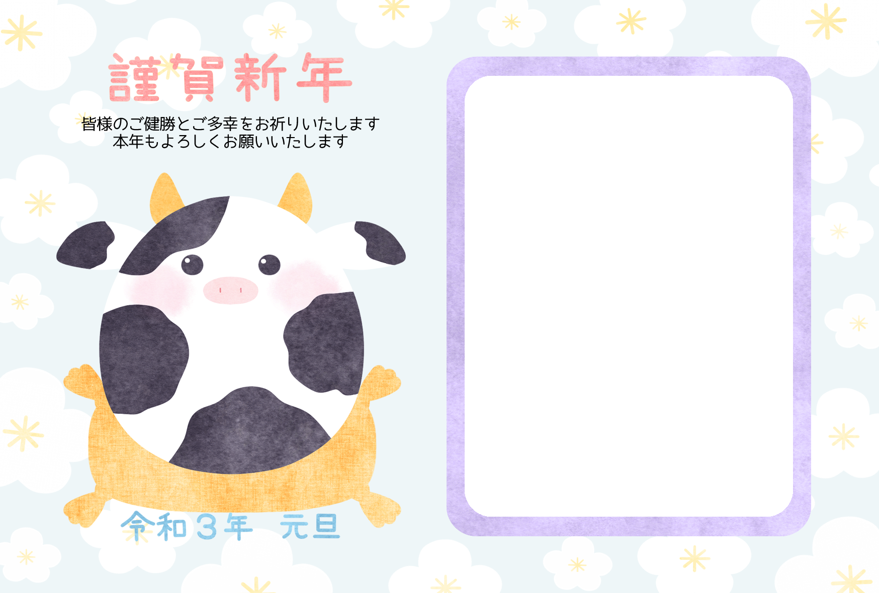 2021年 丑年年賀状1「ウシだるま」(フレーム年賀状)