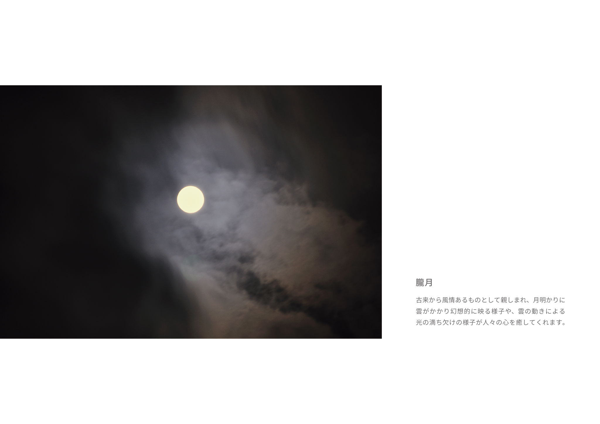 朧月は古来から風情あるものとして親しまれており、柔らかな月の光がうつろいゆく様子が人々の心を癒してくれます。