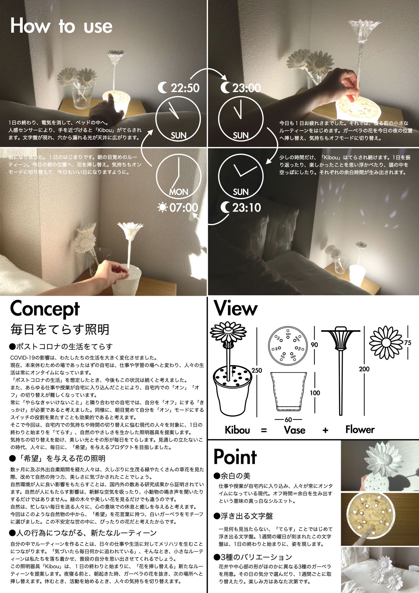 「Kibou」は、見通しの立たないこの時代、自然のやさしさが未来をてらす、毎日に「希望」を与える照明器具。