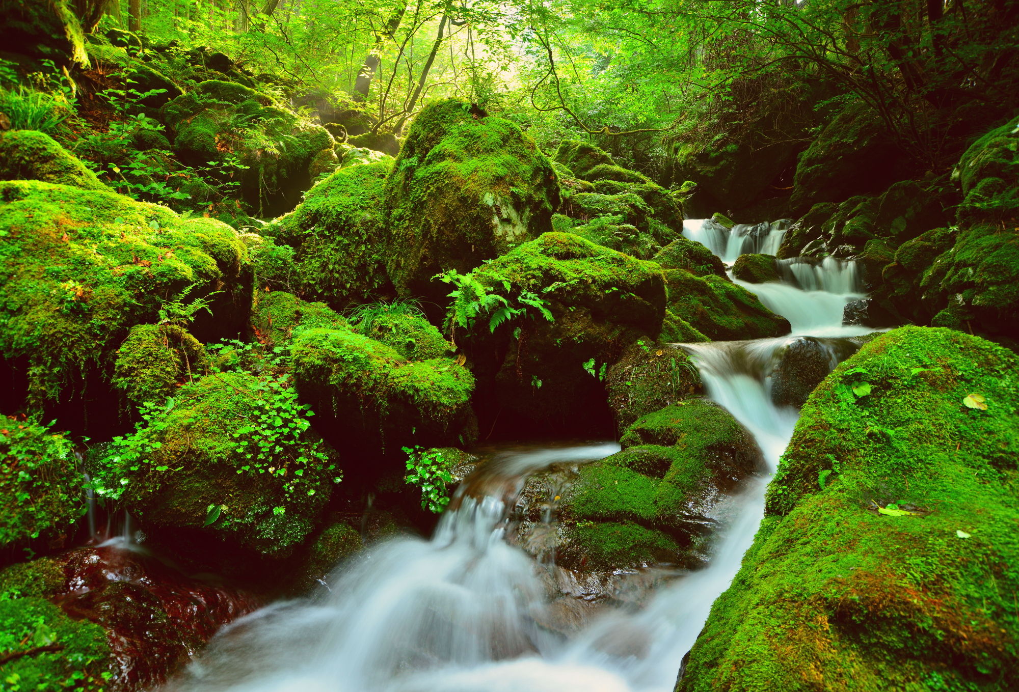It's in green of the trees and moss of a rock by the valley stream with deep pile of the summer.