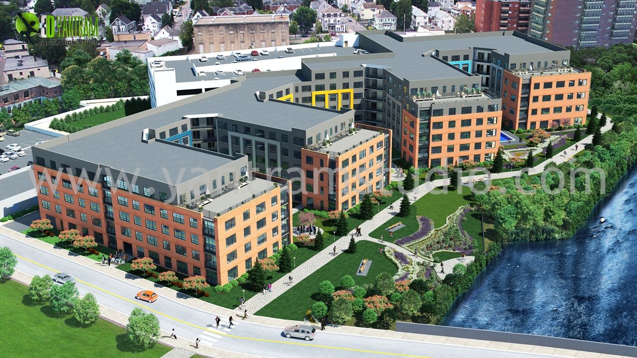Bird Eye View Of Residential Apartments by Yantram Exterior Architectural Visualization Firm - Chicago, USA