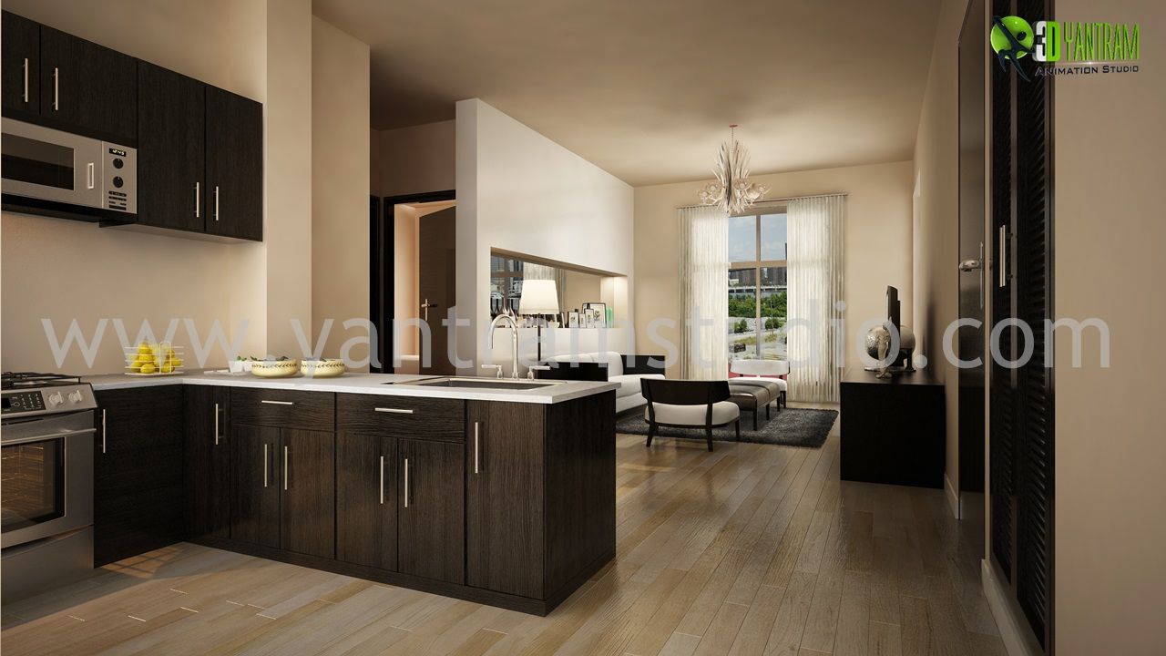 Beautifully Designed Kitchen by Yantram Interior Visualization firm - New York, USA