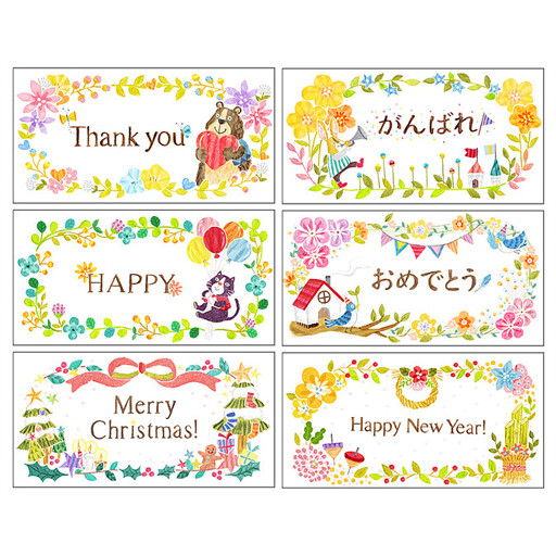 ソーシャルギフトサービス「cotoco」のギフトメッセージカードイラスト 6点。