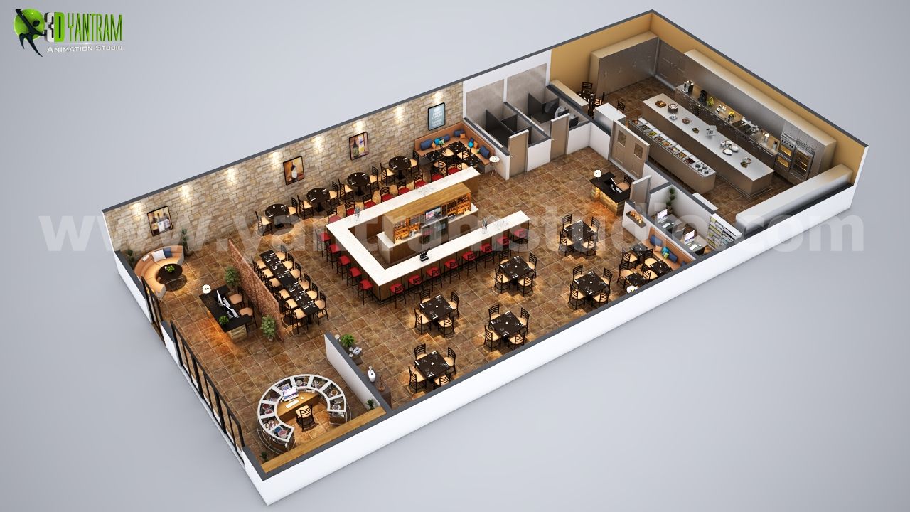 Fully Modern Bar 3D Floor Plan Design Ideas By Yantram architectural rendering studio Mexico city