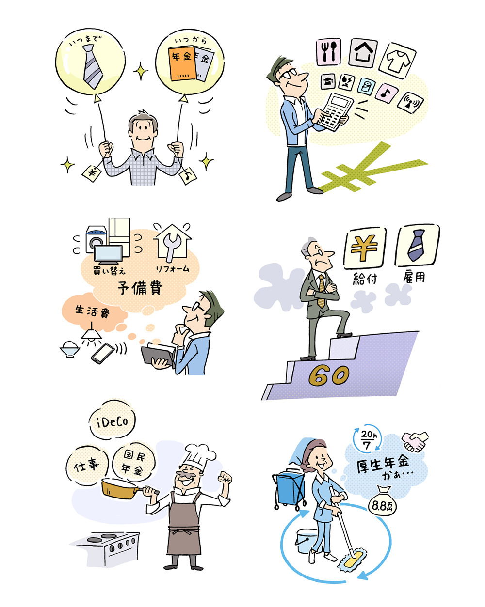 時事通信社さまより配信される新聞連載コラム「働き納めもらいはじめも自分流」 シリーズ挿絵