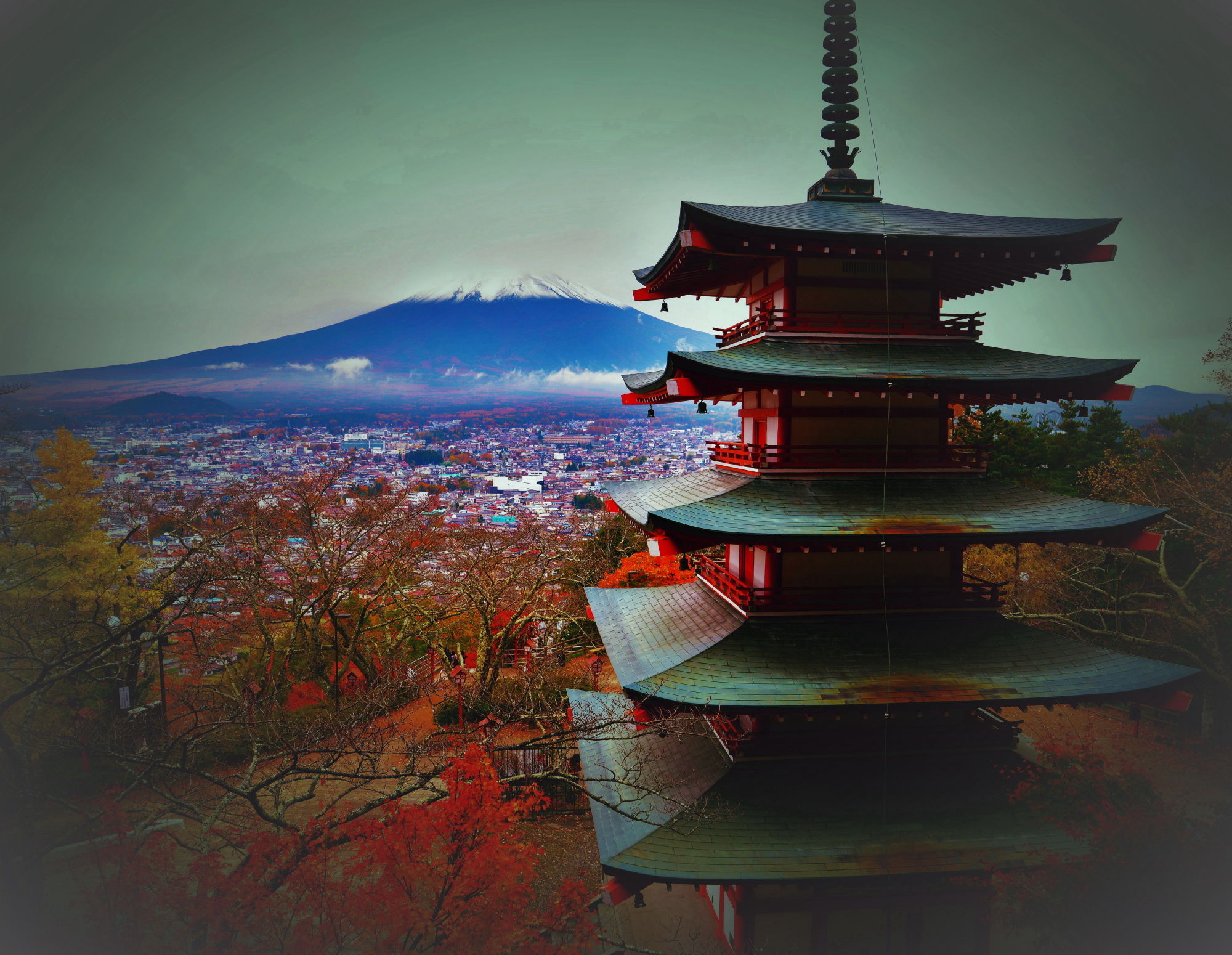 When I look back, Mt. Fuji is big in the inside in the town of which I get a bird's-eye view.