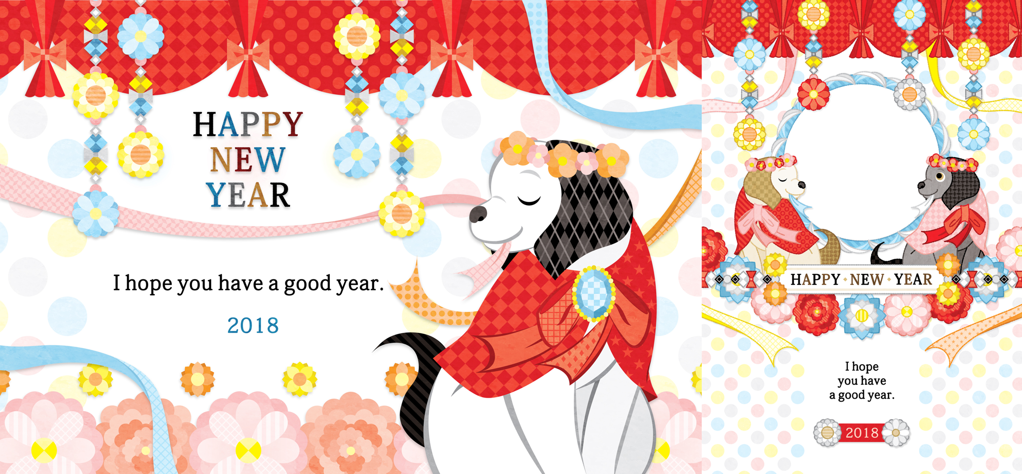 Material Dog 2018 NewYear'sCard Illustration Design Postcard PhotoFrame Template