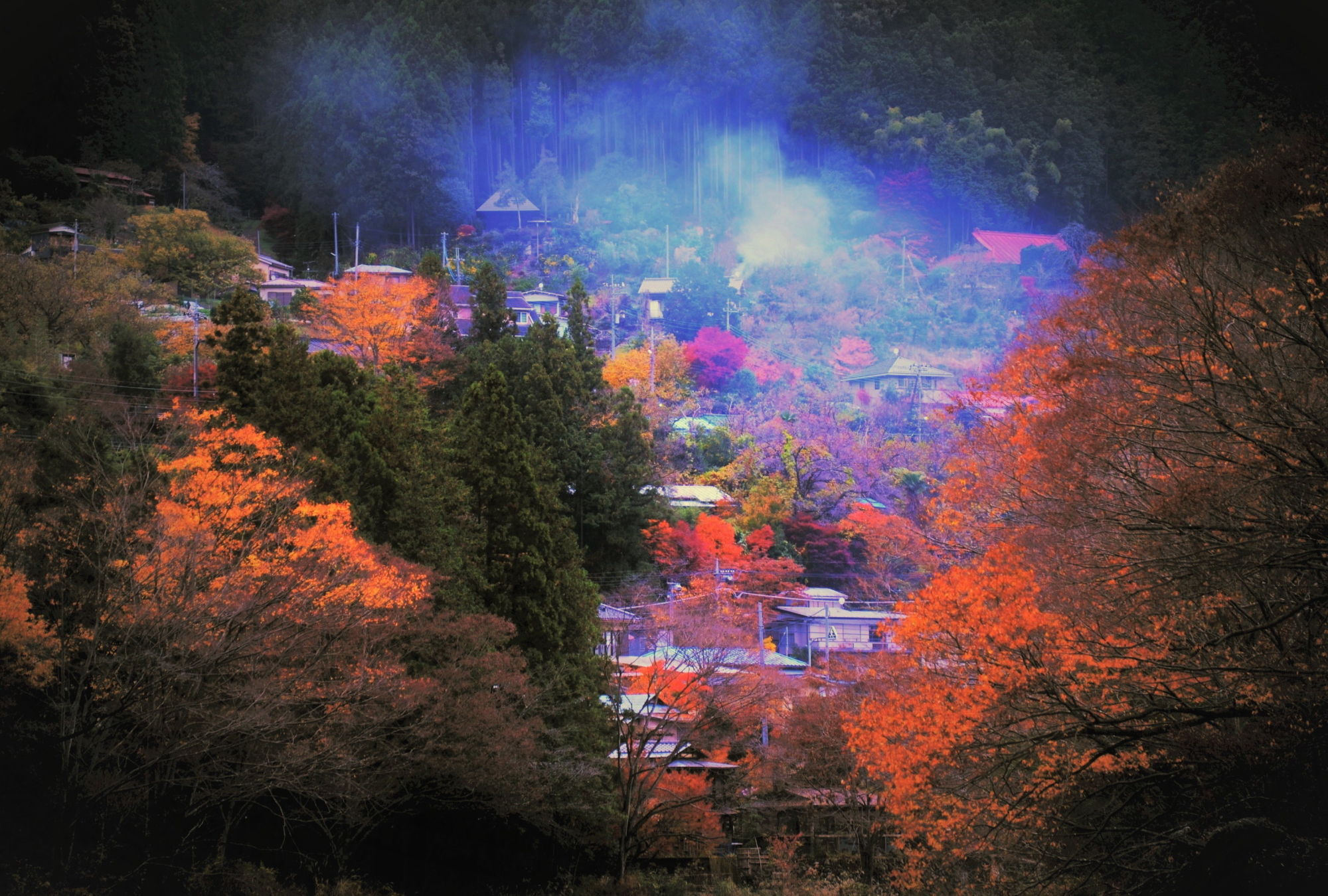 In the smoke that wraps the village, the incense of autumn somehow