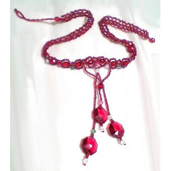 ラズベリー色のシャンデリア用ビーズが気に入って、それを生かしたチョーカーに