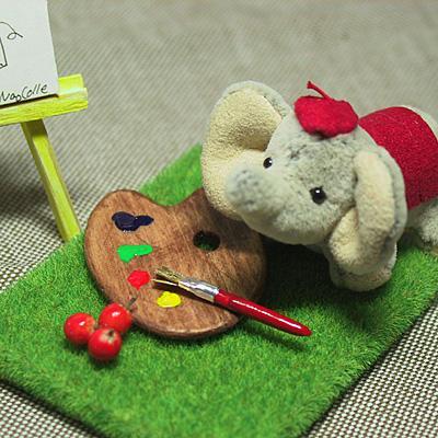オリジナルミニチュア(ぬいぐるみ)。アーティストの象さんです。手のりサイズです。