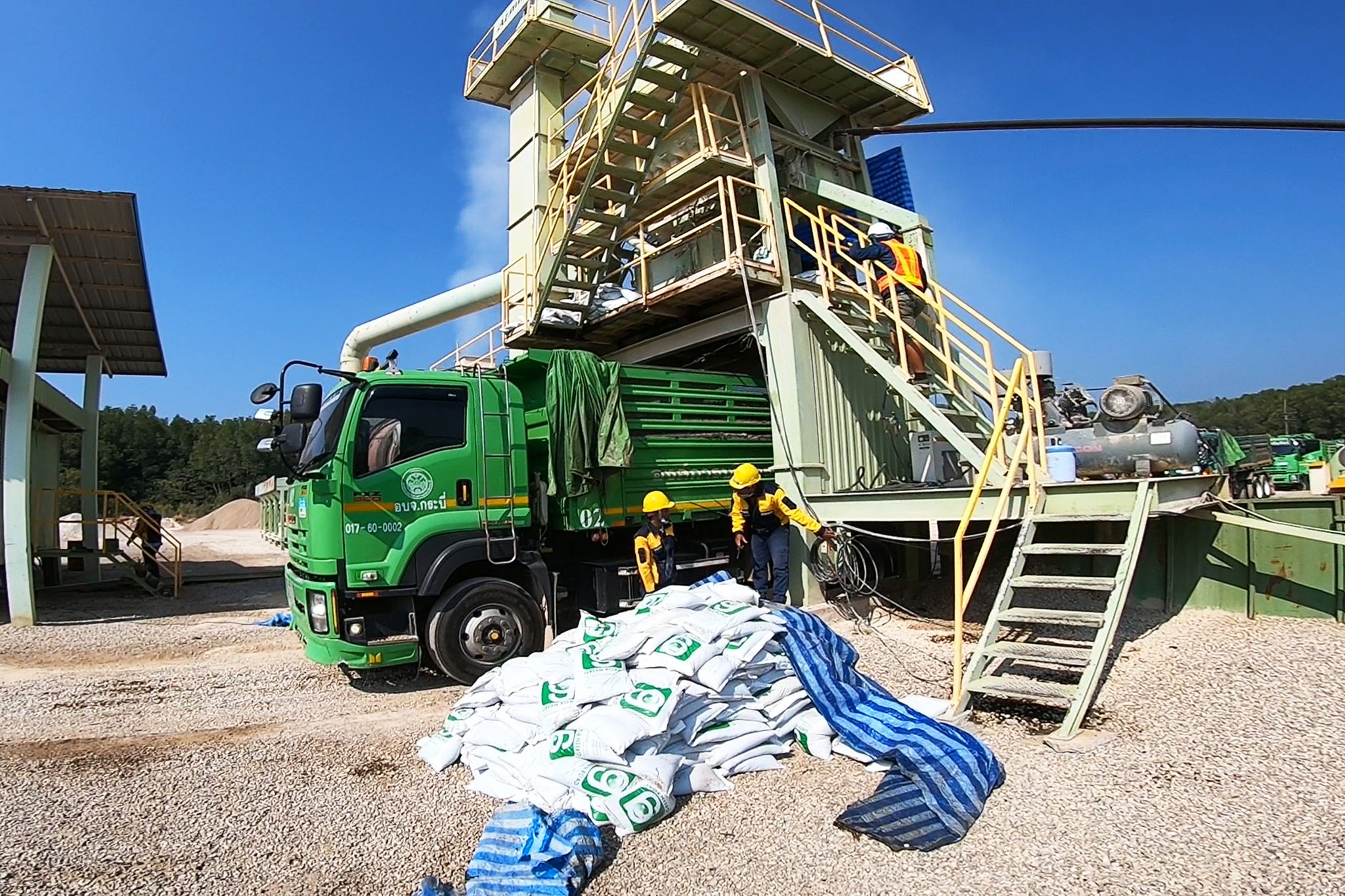 Green cement is a 100% upcycled waste material used to increase the stability of a Green Road and to replace conventional cement.