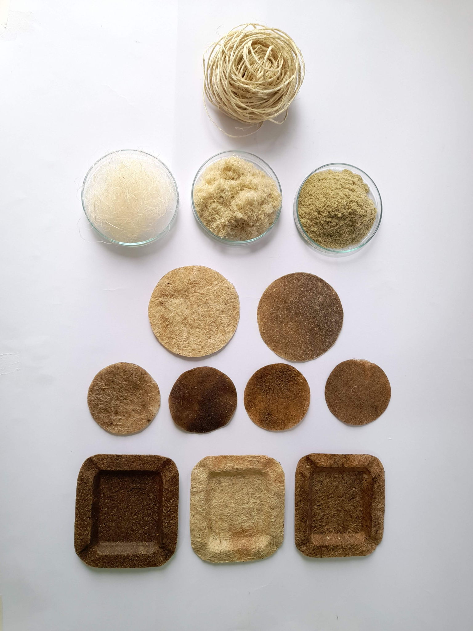“Fiqueco” (Fique: plant, eco: ecological), is a university research project that is still in progress, in which through experimentation it has been possible to elaborate a composite material making use of a polymer of vegetable origin such as starches in combination with Fique fiber. What is sought is to give a second use to fiber waste to apply them in the realization of formal prototypes of disposables, capable of storing food and with attributes similar to conventional single-use plastics, which, once discarded become a serious problem due to their persistence in the environment and the large amount of solid waste generated.