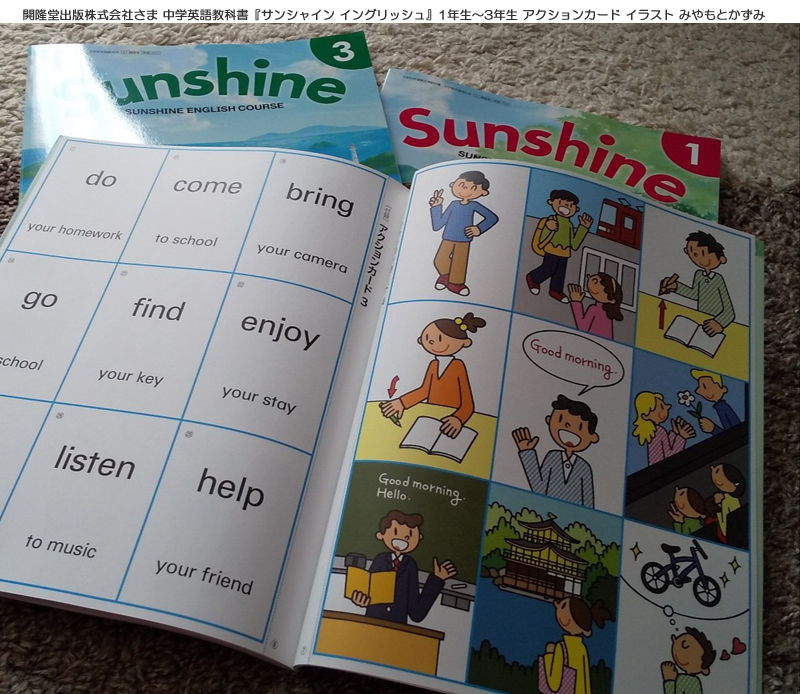 開隆堂出版さま 中学校 英語教科書「サンシャイン イングリッシュ」1年生~3年生 アクションカードのイラスト
