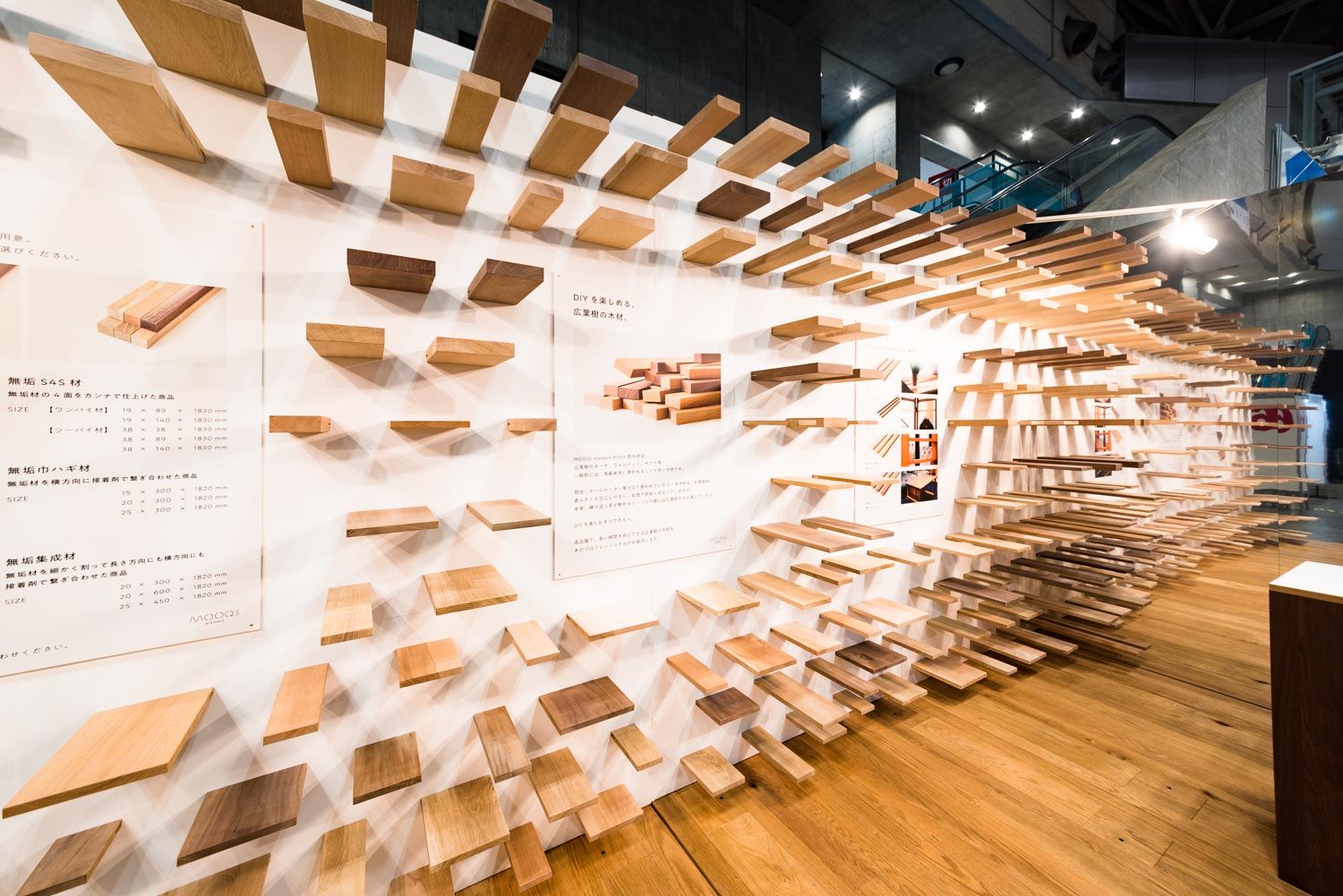 「MOOQs element」のDIY用木材には、広葉樹のオーク、ウォルナット、サクラ等の通常では高級家具に使われることが多い樹種を使用しています。